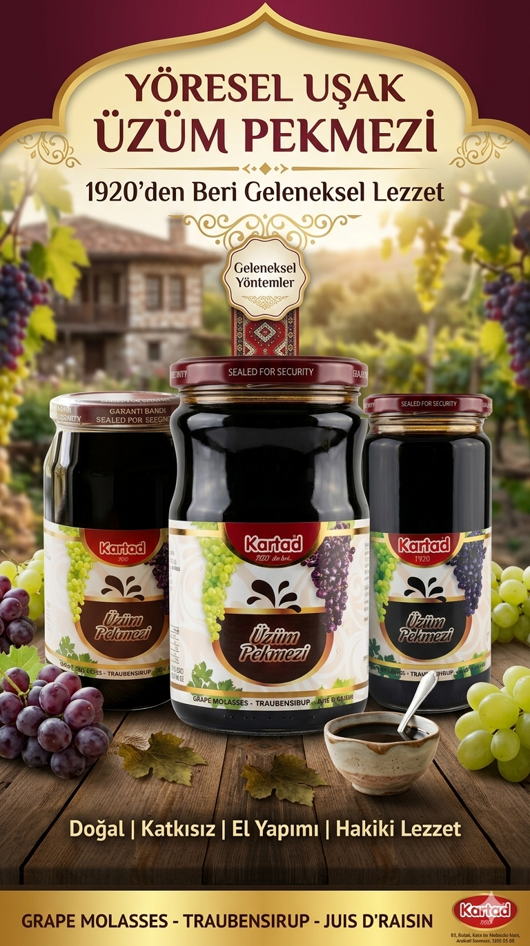 Kartad, asırlık tecrübesiyle ürettiği katkısız ve doğal pekmez çeşitleriyle sağlıklı beslenmeyi destekleyen güvenilir bir markadır. Geleneksel yöntemleri modern hijyen standartlarıyla birleştirerek her damlası özenle hazırlanan ürünler sunar.